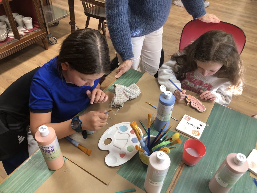 Les élèves des classes élémentaire et collège sont allés au « Potentiel Café » de La Rochelle pour apprendre des techniques de peinture sur céramique. Durant l’après-midi, ils ont pu réaslier la décoration d’un objet, qu’ils ont récupéré après émaillage comme cadeau de Noël !